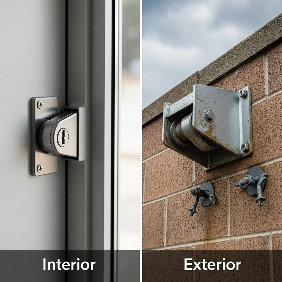 • Exterior: more visible deterrence; plan for weather and proper anchors.