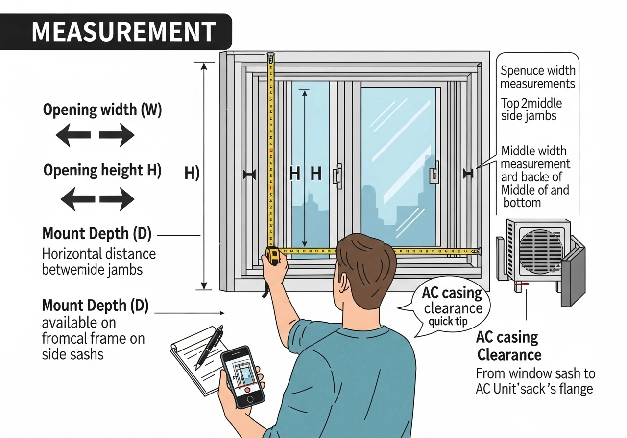 - AC casing clearance: measure from sash to the back of the AC’s flange—your bar shouldn’t press the unit; it should block the sash.