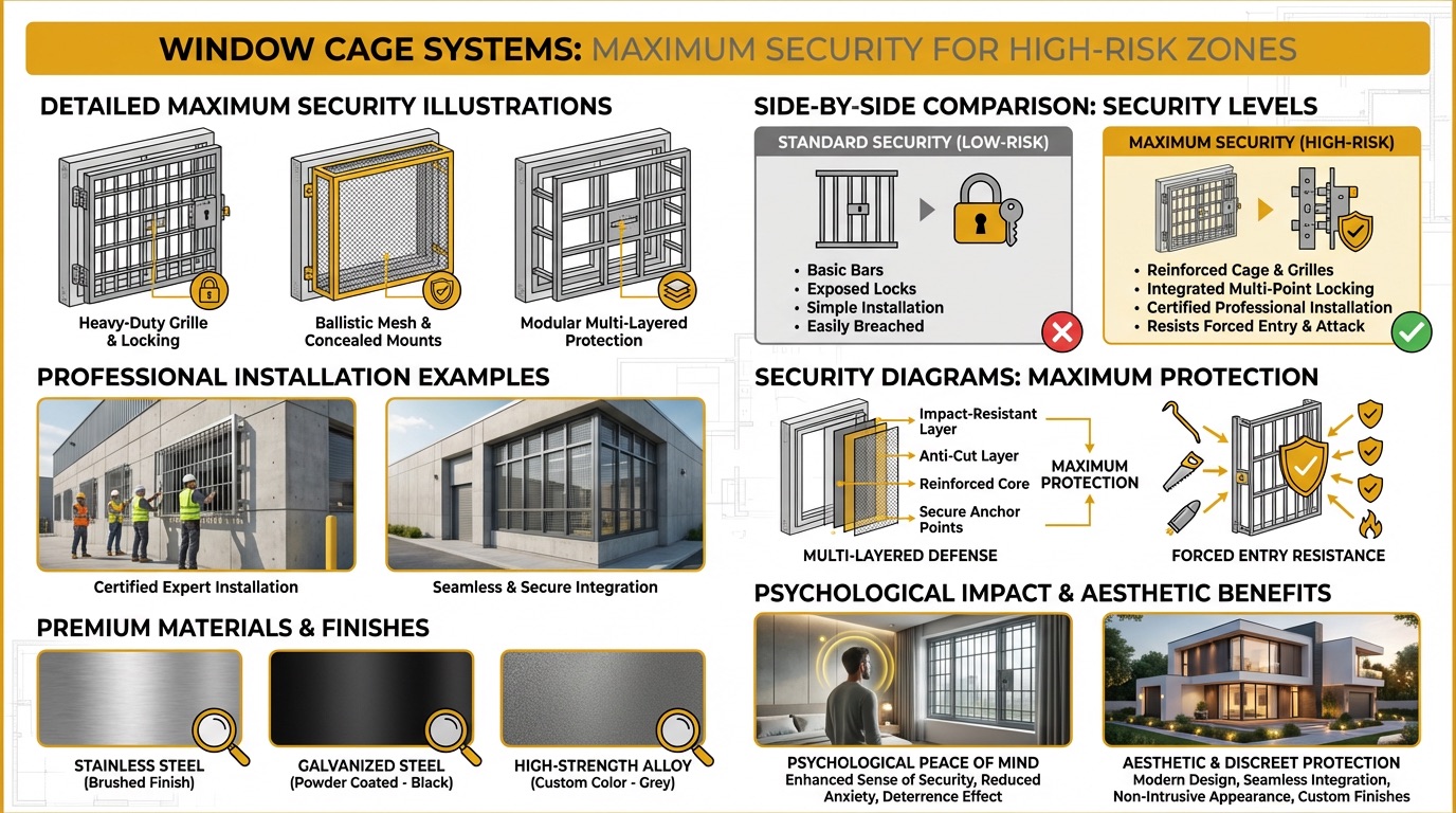 When standard bars aren't enough, you need full enclosure. A window cage is the ultimate physical deterrent, offering 5-sided protection for high-risk assets.